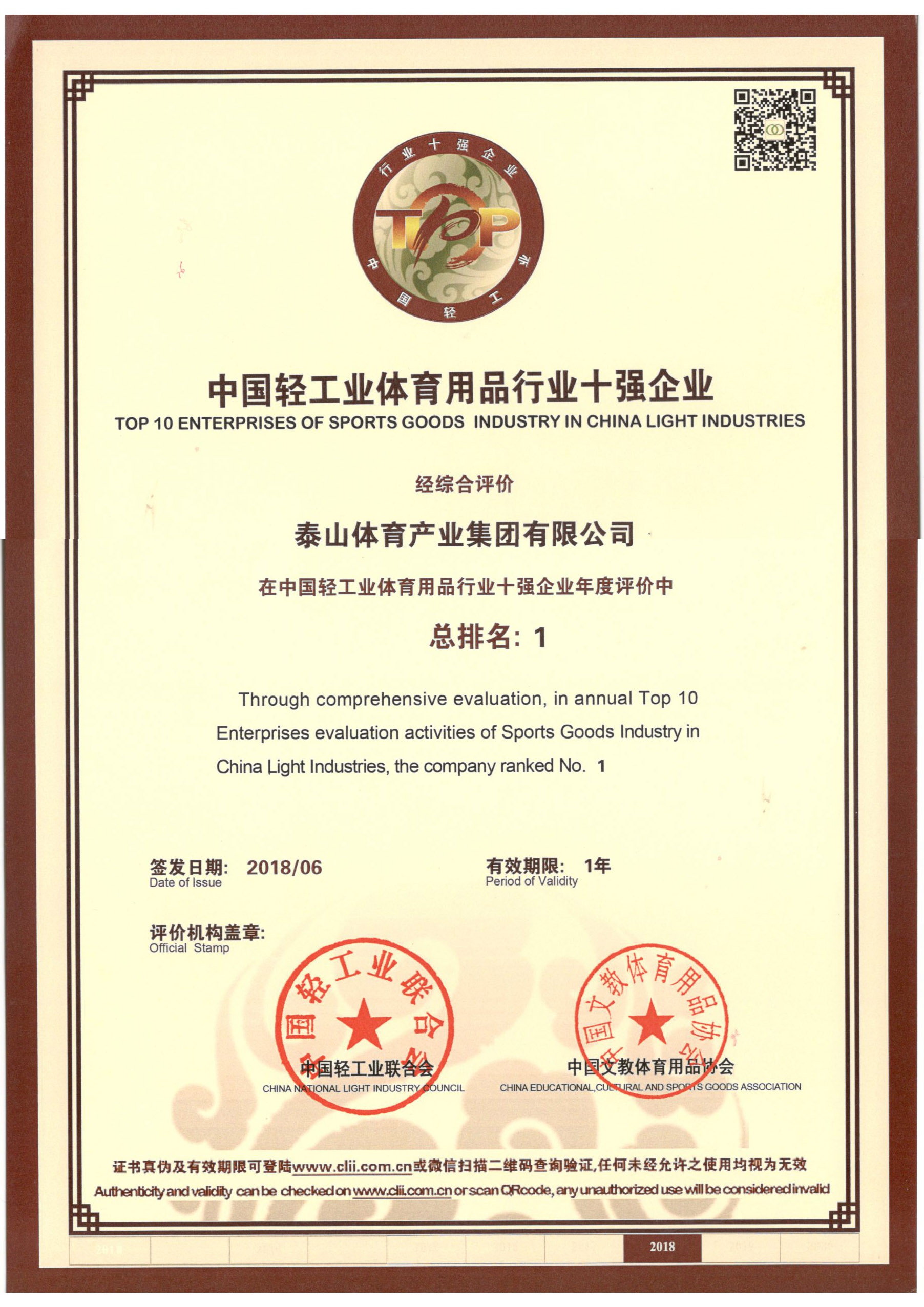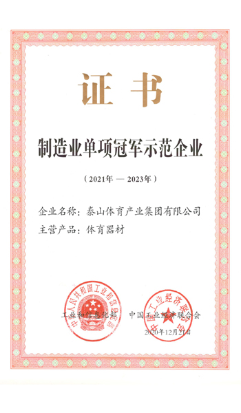 6686体育集团是全国体育用品标准化技术委员会副主任单位、中国文教体育用品协会健身和体育器材专委会主任单位、全国轻工行业先进集体、全国群众体育先进单位、国家制造业单项冠军示范企业、国家体育产业示范单位,连续多年荣获中国轻工业体育用品行业十强。拥有多个国家级研发平台,承担国家科技支撑计划2个,火炬计划3个。