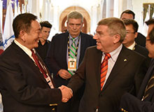 中国自行车运动协会主席崔大林向国际奥委会主席巴赫介绍 6686体育瑞豹自行车